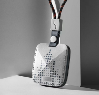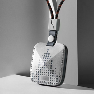 To‘q sariq va oq rangdagi kalit g‘ilofi lanyard bilan.