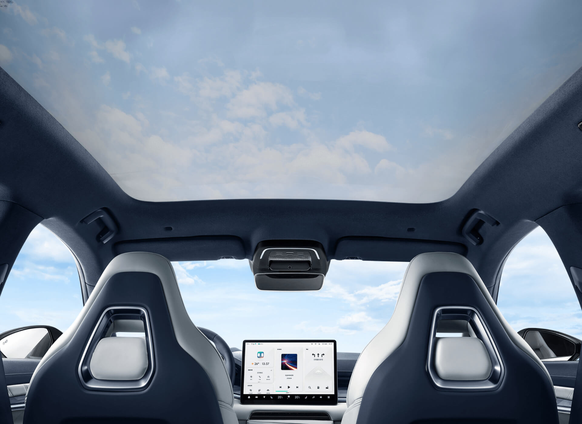 Автомобиль оснащен панорамной крышей, которая создает ощущение простора, обеспечивая более широкий обзор и пропуская больше света в салон.