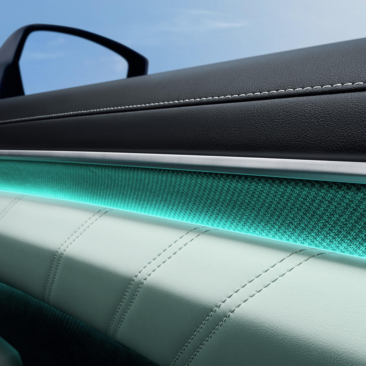 1,47 metr uzunlikdagi LED yoritish tizimi va yorqin yoritilgan logotip modelning xarizmatik tashqi ko‘rinishini to‘ldirib turadi va uni bir qarashdayoq tanish bo‘lishi darajasini yanada oshiradi.